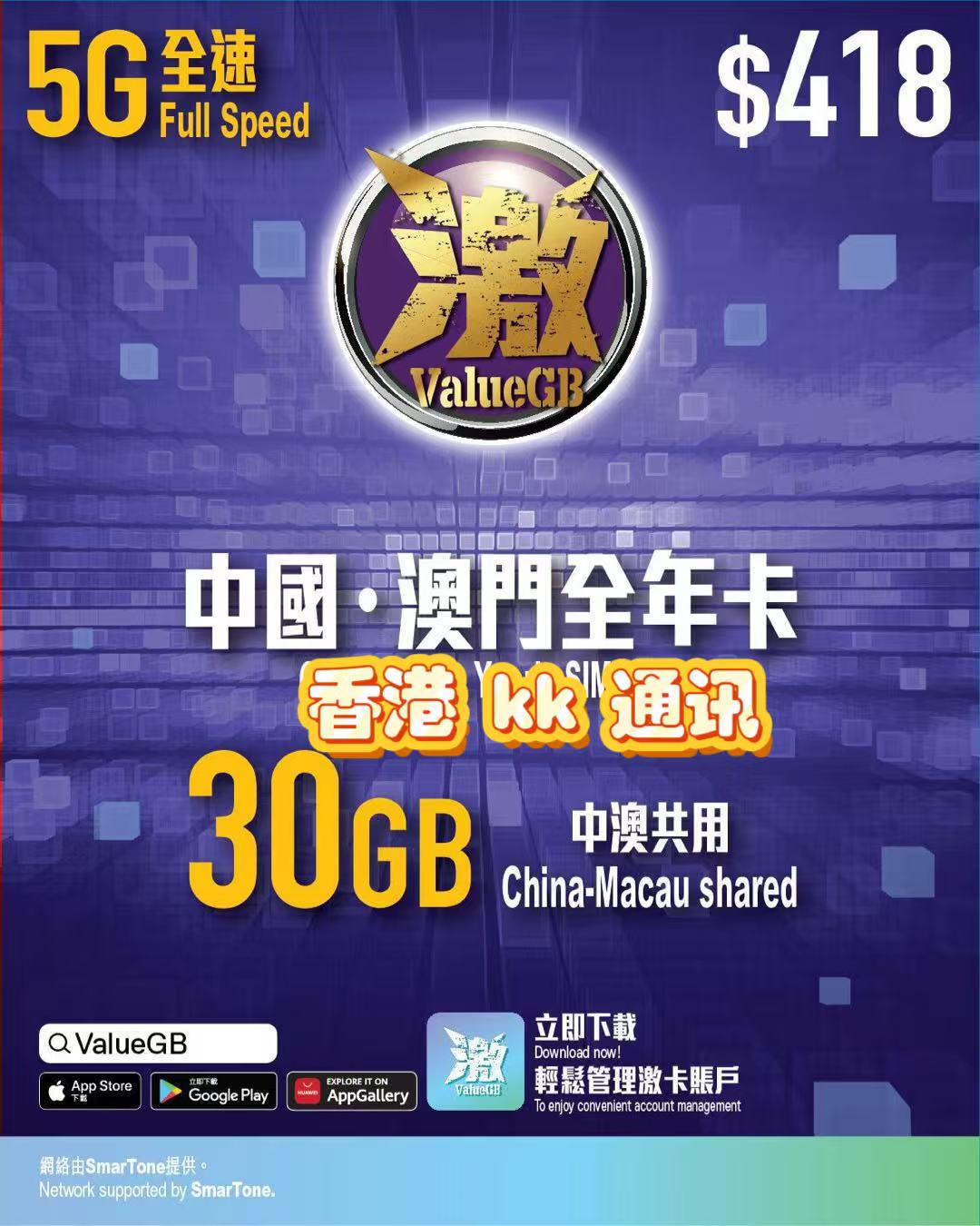 香港CSL流量卡12G内地流量+有效期365天带注册