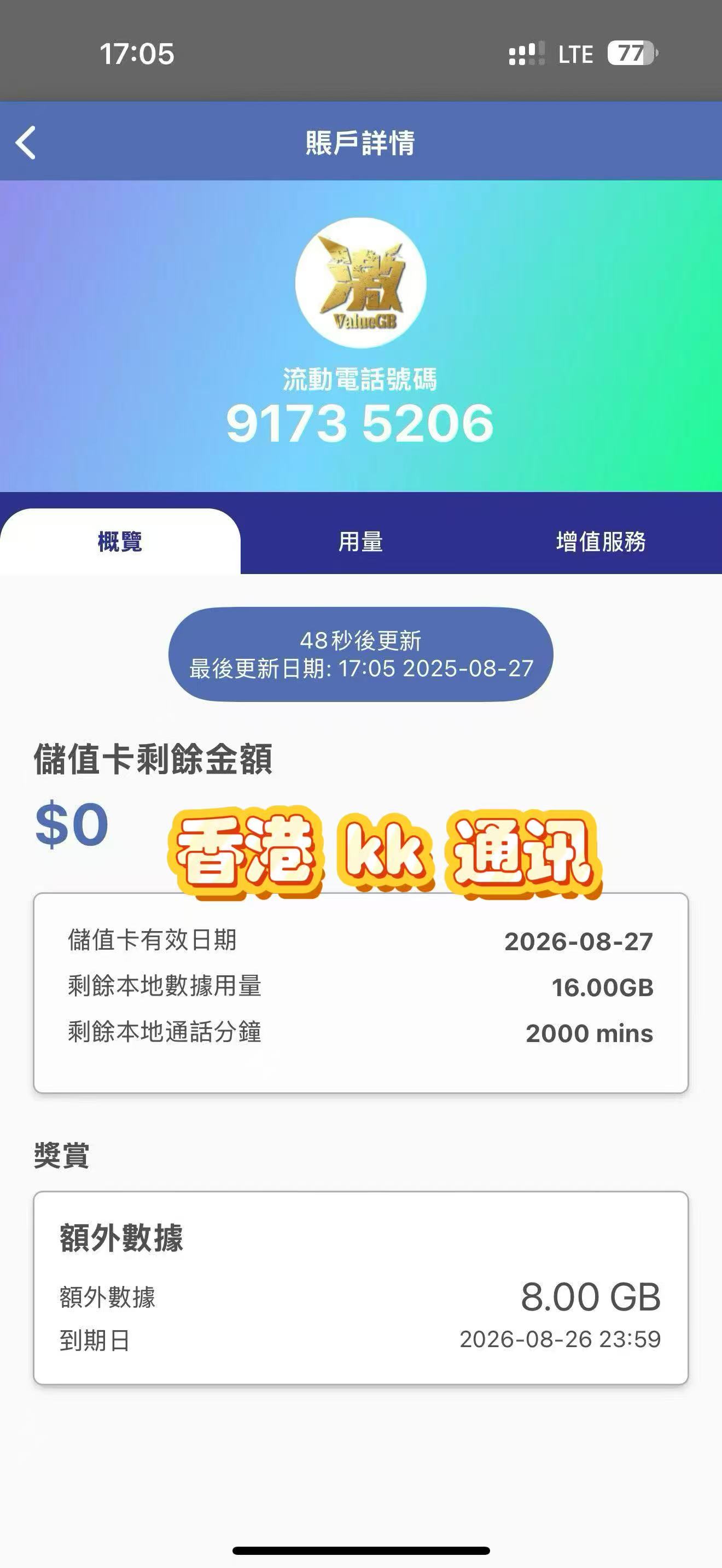 📊 面值和套餐:插卡自动激活,会有短信通知,香港本地通话2000分钟+16G内地漫游流量 有效期365天。