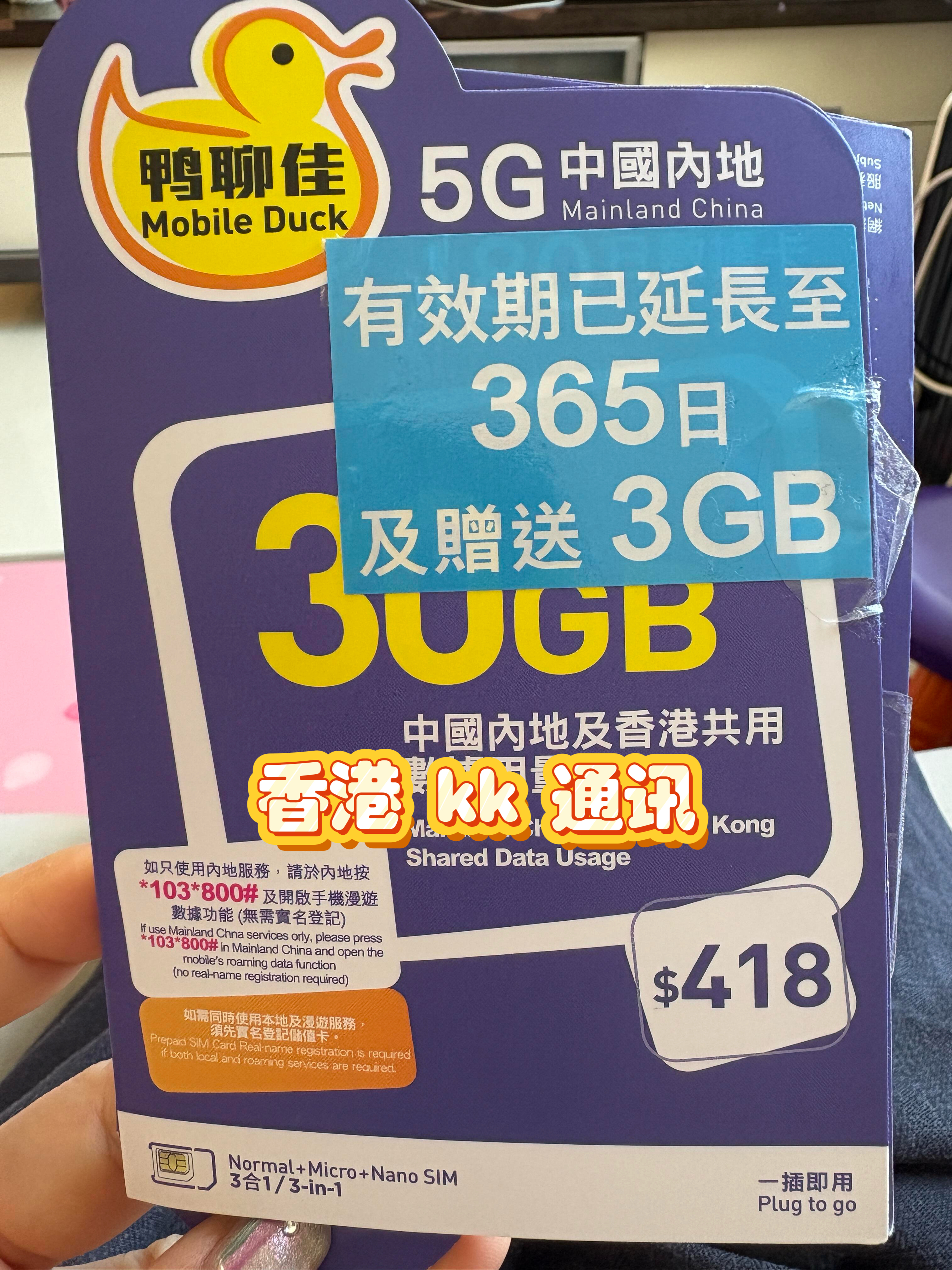 - 香港鸭聊佳33GB流量(有效期365天)
