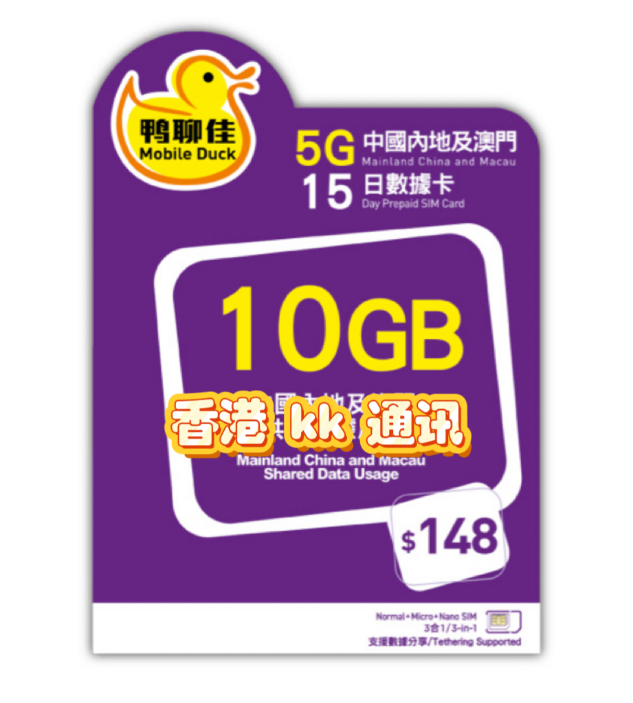 - 香港鸭聊佳 10GB流量(有效期15天)