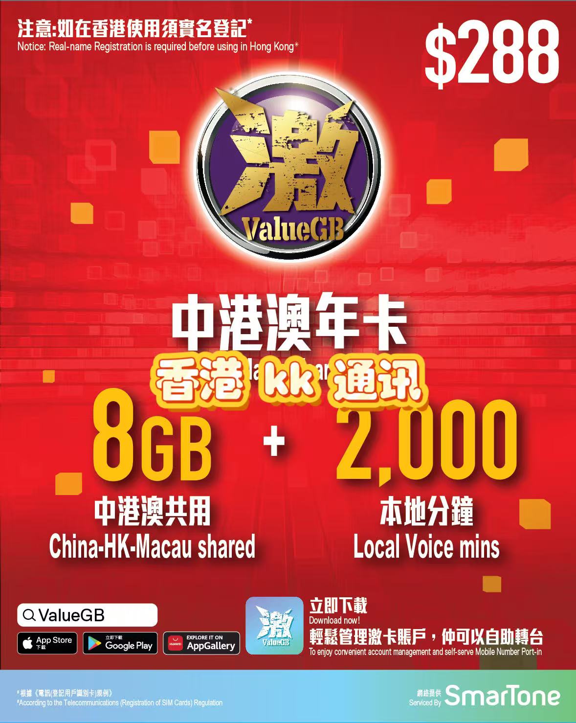📊 面值和套餐:香港本地通话2000分钟+8GB 激活赠送8G 共计16GB 中港澳 365天有效期