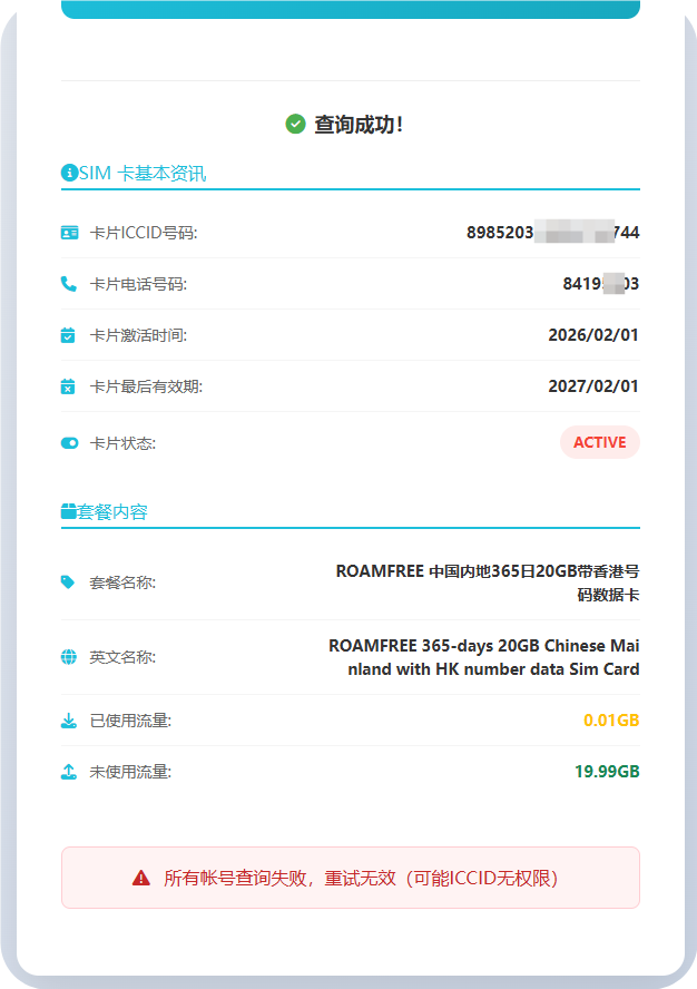 - 3hk和记查询ICCID:查询卡片上的iccid获取号码信息