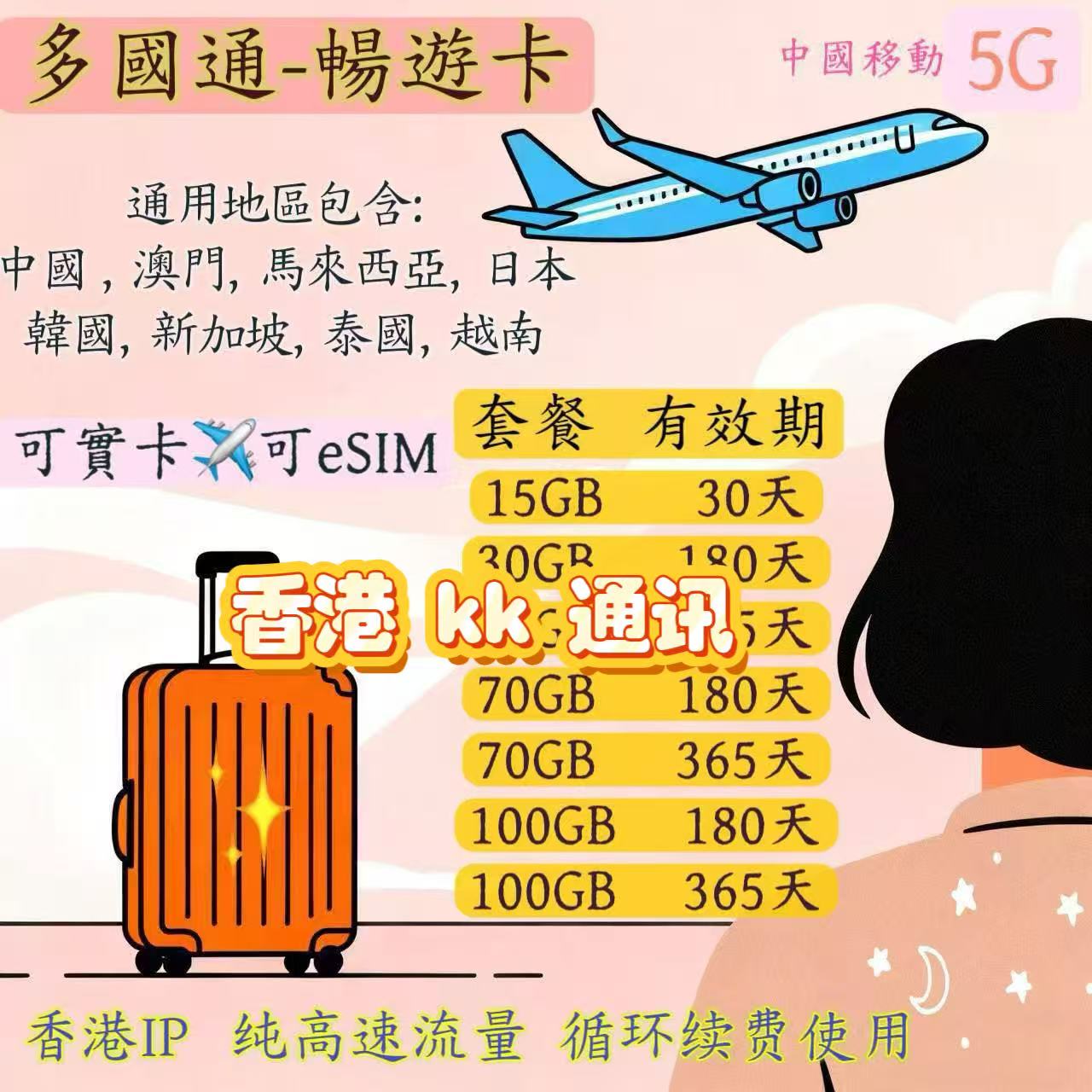 香港鸭聊佳18G流量卡+有效期365天